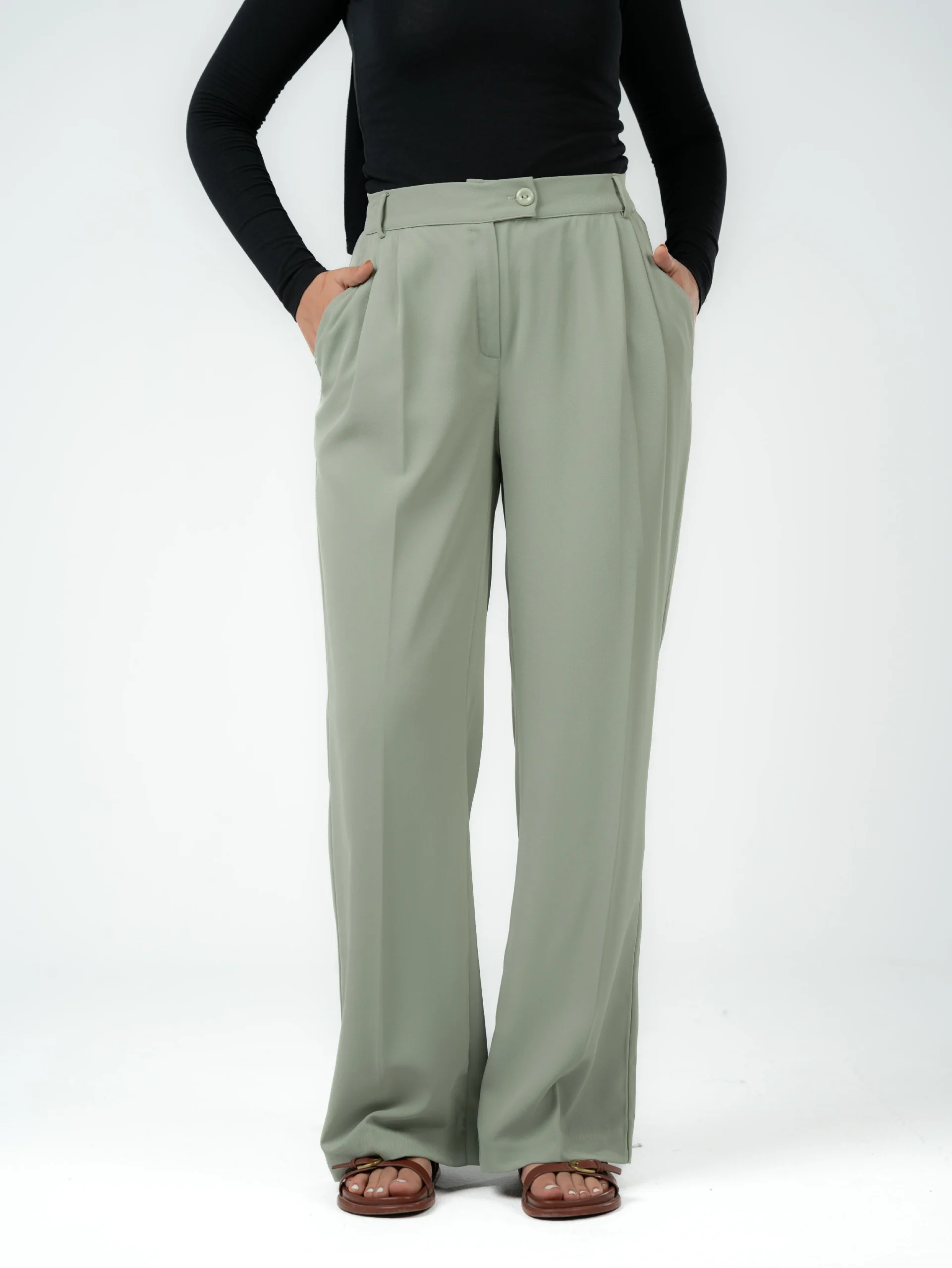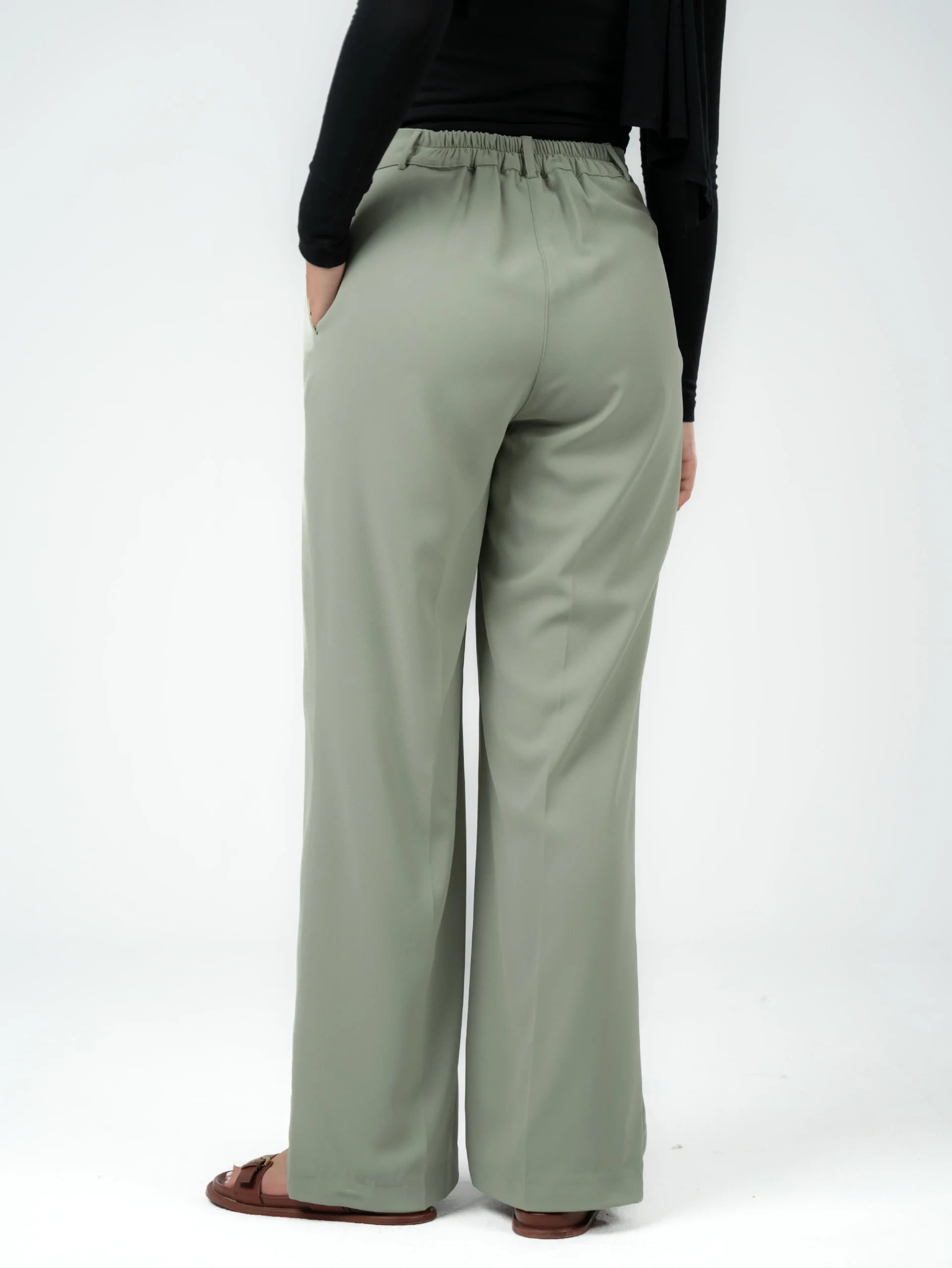 Wide-leg pants with a flowing texture Wide-leg pants are designed with a relaxed fit and a loose leg that moves smoothly with every step. The fabric is lightweight and soft against the skin, making them ideal for summer and everyday occasions. They can be easily paired with a simple top or elegant shirt for a casual or chic look, depending on your style.